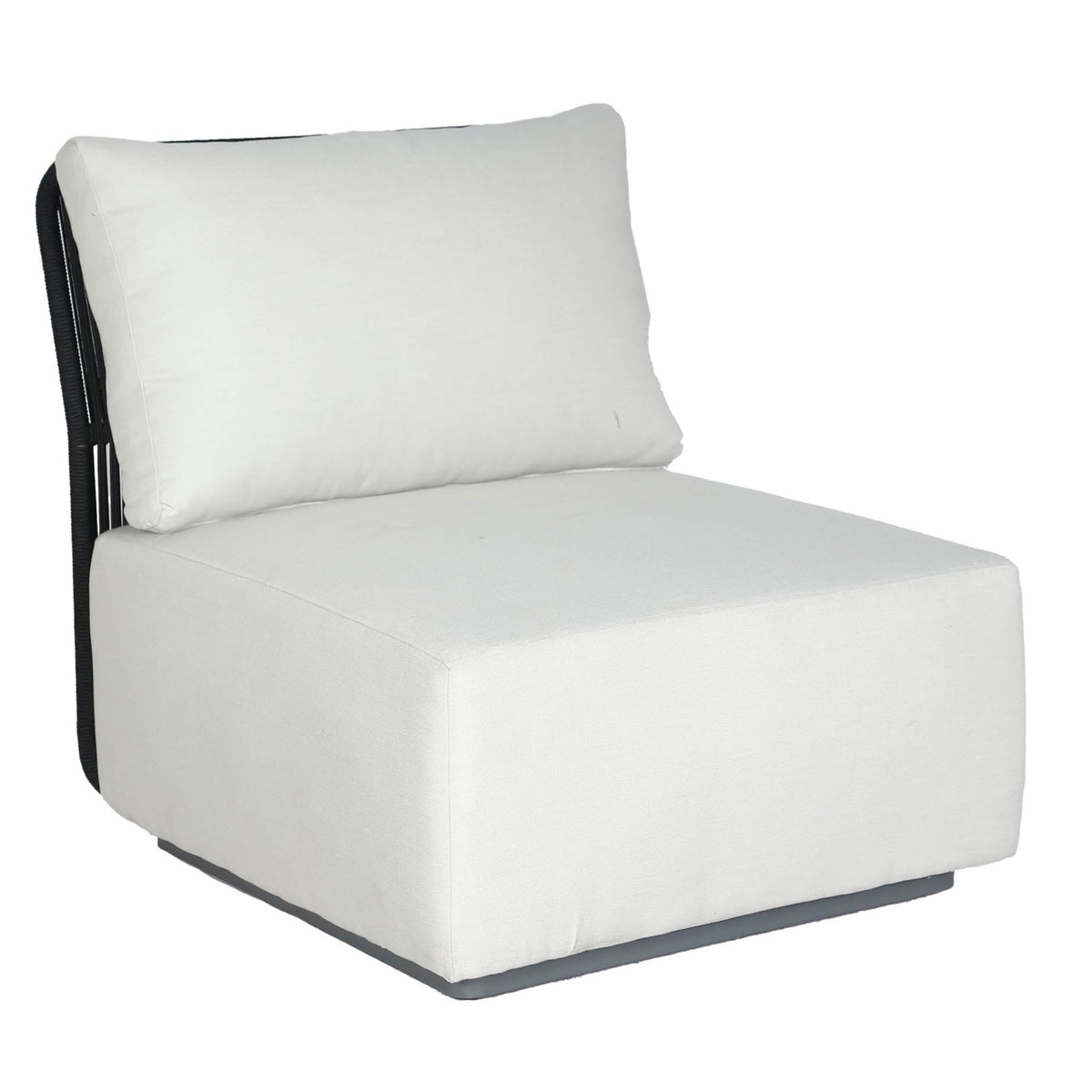 Elevate your outdoor living space with the Naples Outdoor Armless Chair With Durable Rope Design. This modular chair combines style, comfort, and durability, offering the perfect addition to any patio or garden. Crafted with a powder-coated metal frame, it features a stunning 100% polypropylene rope design that adds sophistication while ensuring outstanding durability. The rope is soft, moisture-resistant, and easy to clean, keeping your chair inviting and beautiful. The modular design allows you to adapt your seating arrangement effortlessly. Cushions are made from quick-dry foam and covered with UV and mold-resistant polyester fabric, ensuring lasting comfort and hassle-free maintenance. Enjoy cozy moments outdoors with this exquisite piece.