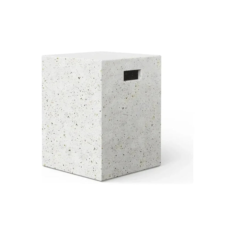 The Una Stool is a versatile and stylish piece that combines practicality with urban elegance, available in both Lava and Ivory Terrazzo colors. Crafted from 100% fiber-reinforced concrete, it offers exceptional durability and strength, making it ideal for both indoor and outdoor use. The stool’s minimalist design features a square block shape and integrated cutout handles, ensuring easy portability and effortless movement between spaces like living rooms, patios, or gardens. With a robust weight capacity of 220 lbs, it serves as both functional seating and a decorative accent. Each stool is artisan-crafted, showcasing a unique patina that gives each piece its own distinct character.
