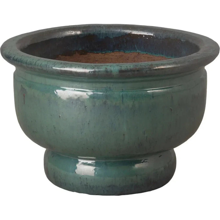 Introduce timeless elegance to your home or garden with the Pedestal Bowl Ceramic Planter. Expertly handcrafted in Thailand, this premium ceramic piece combines traditional artistry with a modern silhouette. Its bowl-shaped design rests atop a sturdy pedestal base, adding a sculptural touch to any space. Available in Blue, Distressed White, and Teal, each finish offers a unique aesthetic to complement a variety of interiors or exteriors. Suitable for indoor and outdoor use, this weather-resistant planter is easy to maintain and perfect for elevating any environment.