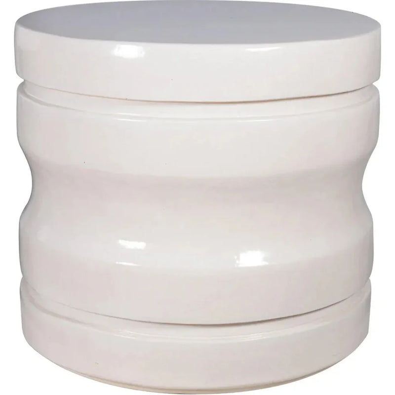 The Dune Accent Table - White Outdoor End Table is a bold and daring addition to any space, offering a range of organically-inspired, handcrafted ceramic pieces. Each piece is carefully created with crystalline glazes, resulting in a stunning "jewel" finish that not only adds strength and durability, but also embraces the unique variations present in handcrafted pieces. This collection, designed by award-winning and internationally recognized designer Laura Muller, embodies a sense of wholeness and balance in its lifelike materials, such as wood, limestone, and ceramics.