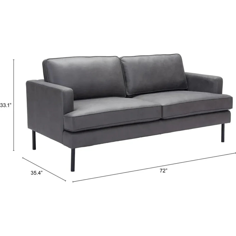 Unleash your adventurous side with the Decade Sofa Vintage Grey! This classically modern sofa is the perfect combination of comfort and style, featuring durable vinyl and powder coated steel legs. Fit for any home or office lobby, this bold piece is sure to make a statement. Clean with ease using mild soap and warm water. Available in Vintage Grey. Classically modern in shape and design, the Decade Sofa is comfortable and stylish, wrapped in durable vinyl and on powder coated steel legs. This piece fits in any home or office lobby.