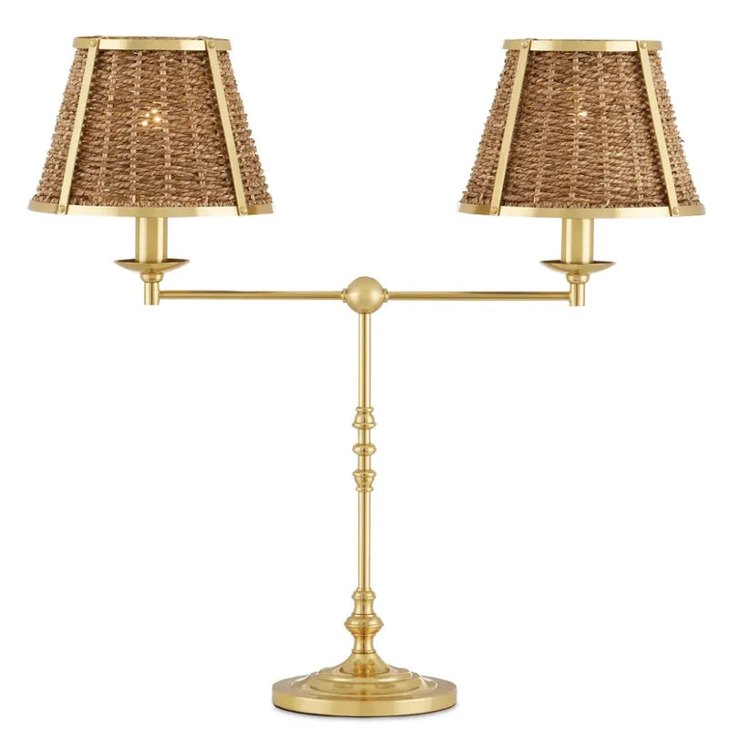 Discover the Deauville Desk Lamp, a stunning creation by Suzanne Duin from Maison Maison. Crafted by hand with natural seagrass and polished brass, it radiates elegance and sophistication. Trimmed in gold and featuring a refined design, it infuses French allure into your office. Embrace luxury and elevate your space with this opulent and sophisticated lamp. The Deauville Desk Lamp is the brainchild of Suzanne Duin, founder of the Houston boutique and design studio Maison Maison.