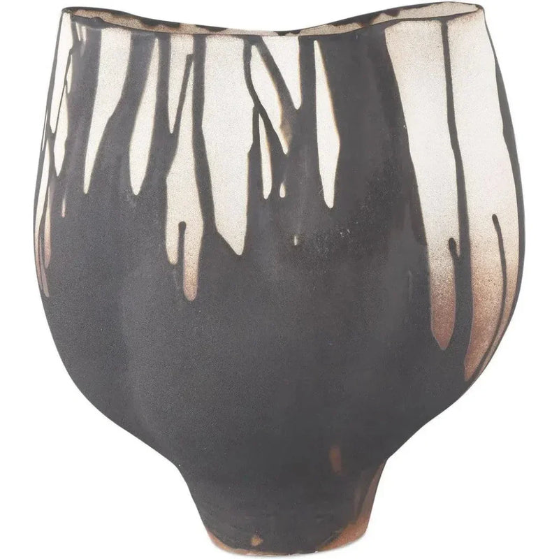 The dripped pattern on the surface of the Inoue Large Vase was inspired by the art of Imperial Japan, particularly the rusticity of Zen ideals that arose during the Kamakura period. Made of porcelain, the black and off-white vessel is subtly rough to the touch and has a matte appearance. The gallery-worthy vase is hand-thrown and hand-decorated so the patterns will vary slightly. Bring home a piece of the serene and elegant beauty of Imperial Japan with the Inoue Large Vase.