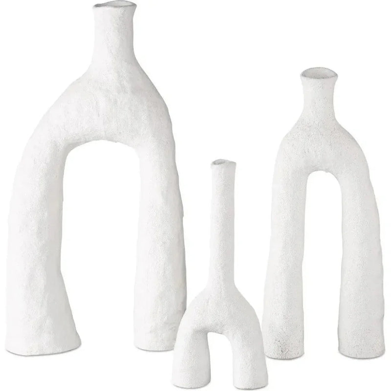 Zante Ceramic White Vase Set of 3 - LOOMLAN - Currey & Co - Vases & Jars
