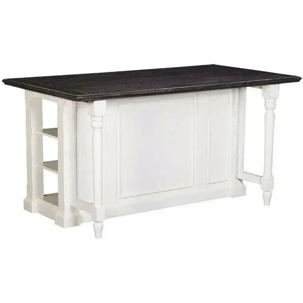 And storage space is abundant with adjustable shelving on the sides and back of the island. A must-have gathering space for the hub of your home, this kitchen island is ideal for cooking, dining, crafting, homework, and family game night. The table top was engineered with a drop-down gate leg design allowing you to extend the convenient, built-in table leaf whenever more space is needed. The universal home bar kitchen island with a 13" drop leaf top has been built with mindi solid and veneers, planked and shaped dusty wax tops.