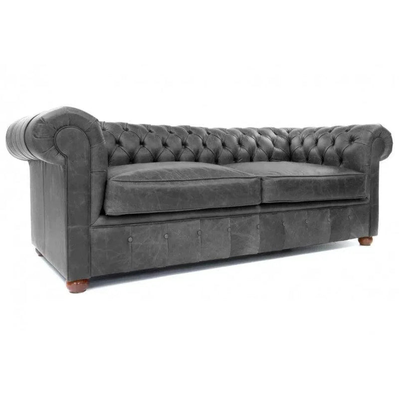 88" Vintage Grey Chesterfield Leather Sofa Made to Order Features: