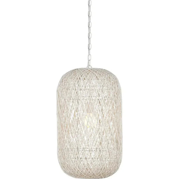 27 in. Cocoon Iron and Glass White Pendant Features: