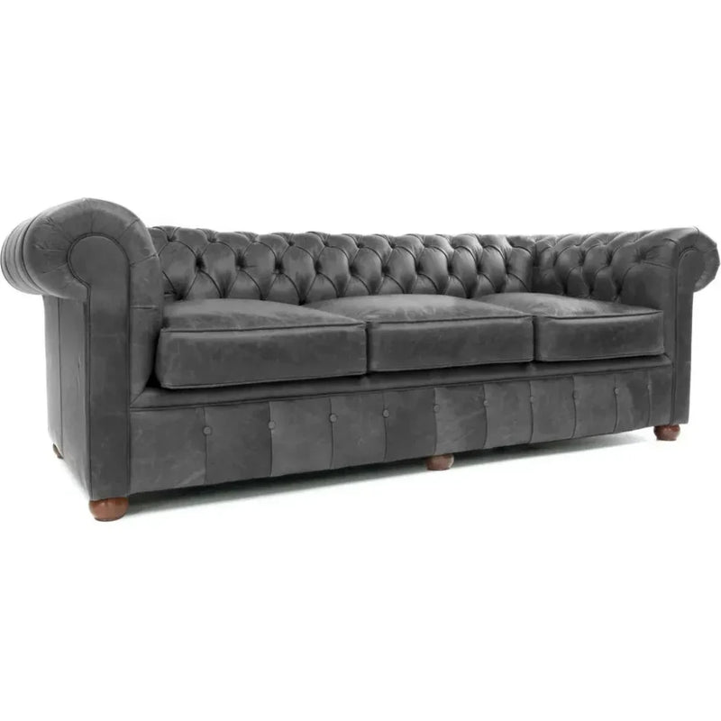 108" Wide Vintage Gray Chesterfield Leather Sofa Custom Made Features: