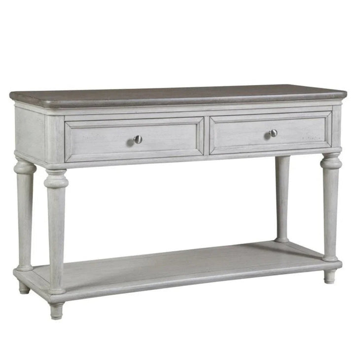 48" White Two-Tone Weathered Finish Sonoma Sofa Table Features: