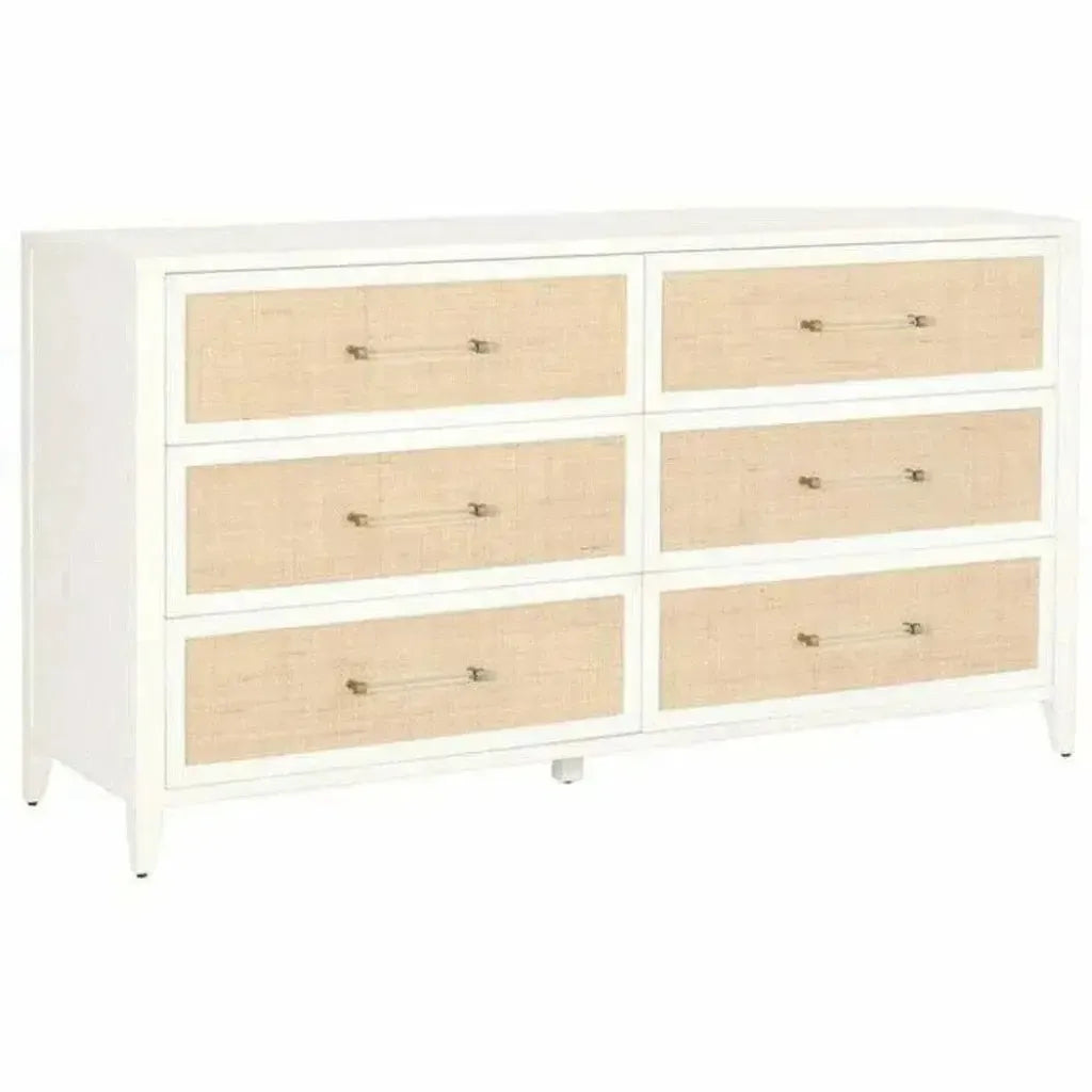 Holland 6-Drawer Double Dresser Matte White, Natural Rattan Features: