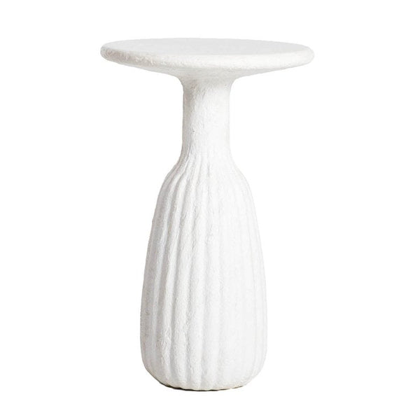 Ivory concrete gives this side table a sturdy and sleek look, perfect for any modern home. Standing tall, it's just the right height to place beside your favorite chair or sofa. The white color blends effortlessly with various decor styles, making it a versatile addition to any room. The base made of plaster ensures it remains stable, so you can confidently place items on it without worry. Its compact design makes it ideal for small spaces, while still offering enough surface area for a lamp, book, or cup of coffee. Another thing you'll like is its simple maintenance, just a quick wipe and it's clean.