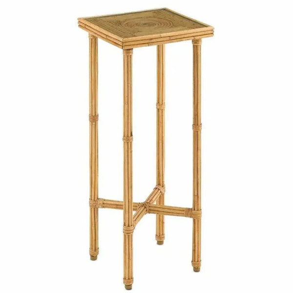 Our Silang Rattan Drinks Table is a petite rattan drinks table with a hand-made geometric pattern on the top. Artisans painstakingly cut and fit the reeds in place to create this artful arrangement in the plant's warm hues. The material is protected by an inset glass top.
