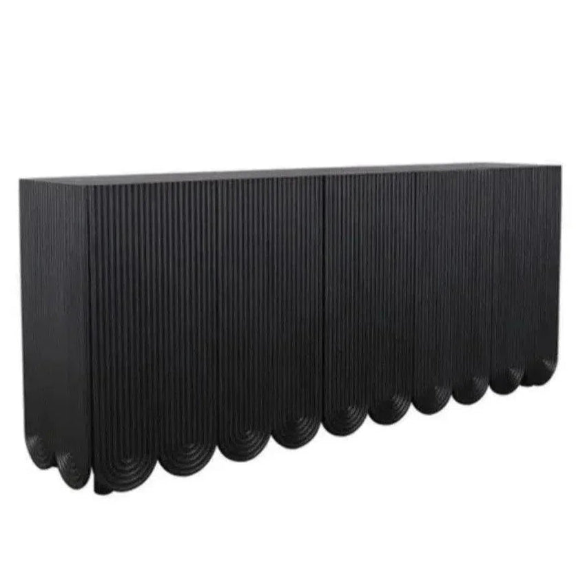 - The Adelia sideboard features gorgeously fluted scalloped doors in a beautiful satin black finish. Made from engineered wood and sustainable Bayur wood