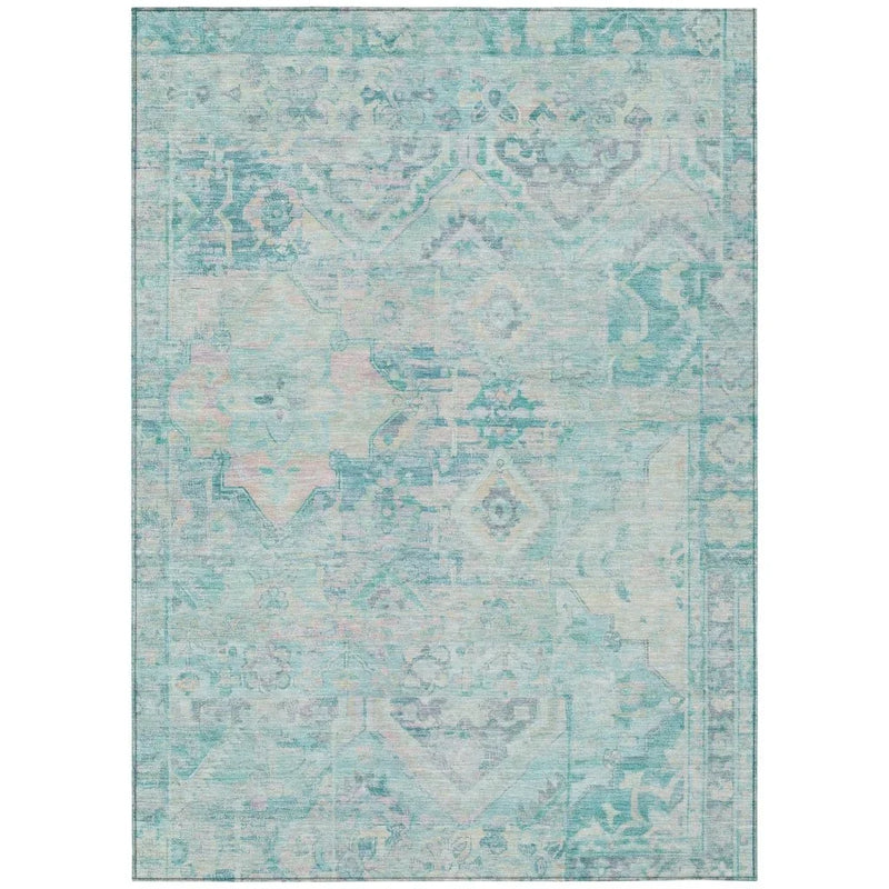 Aelain Teal Washable Rug UV Stabilized Indoor-Outdoor Features: