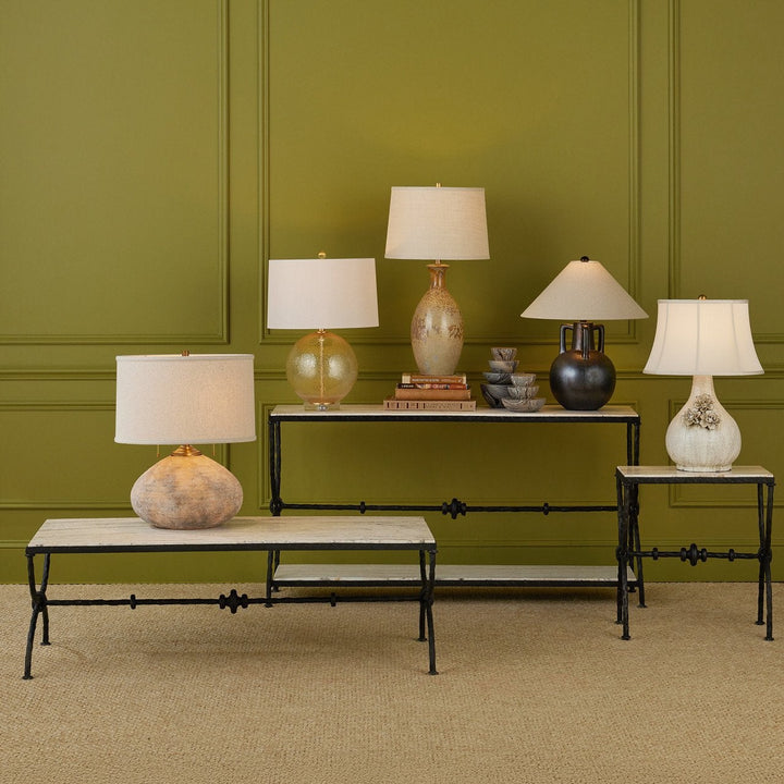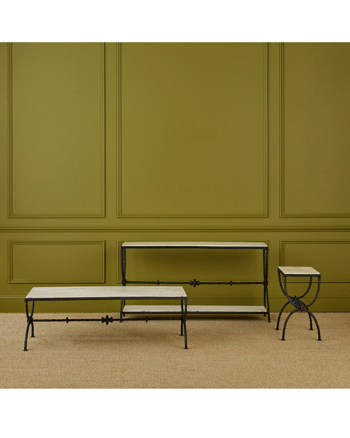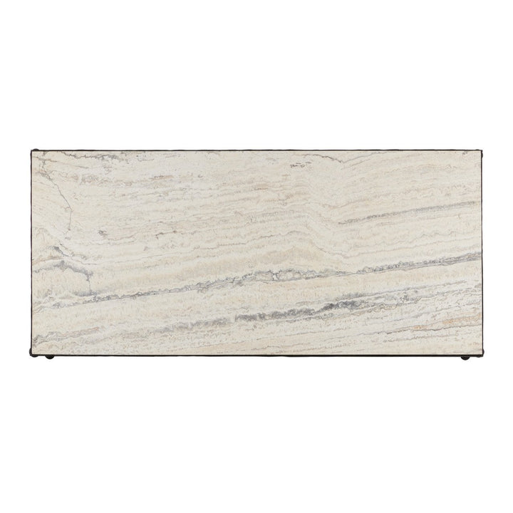 Crafted from high-quality white travertine and sturdy wrought iron, this table is designed for both style and durability. Its rectangular shape offers ample space for drinks, books, or decor, making it a functional addition to any room. The adjustable floor glides ensure stability on various surfaces, providing convenience and peace of mind. Whether you have a minimalist or eclectic decor, this table fits seamlessly, adding sophistication to your home.