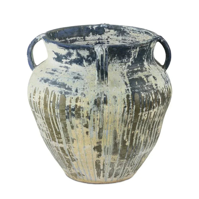 Agrigento Blue Drip Terracotta Outdoor Planter-Outdoor Accessories-Currey & Co-LOOMLAN
