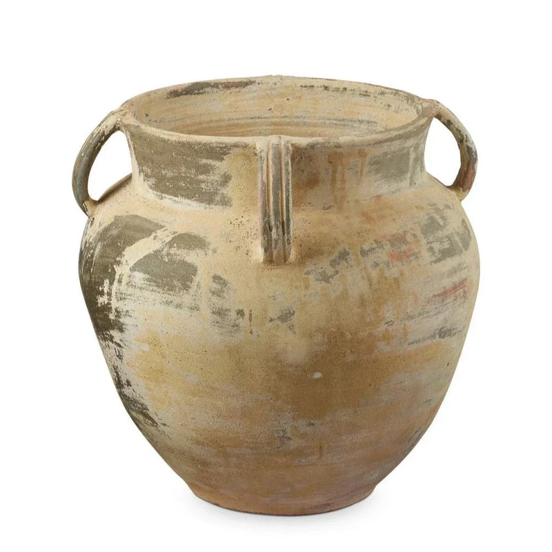Crafted from terracotta, the planter’s surface is intentionally pitted and textured to create the look of a cherished antique that has weathered gracefully over time. Whether used to showcase vibrant greenery or left unplanted as a decorative accent, the Agrigento White Planter brings a sense of history and warmth to patios, entryways, or interior vignettes with its authentic, timeworn appeal.