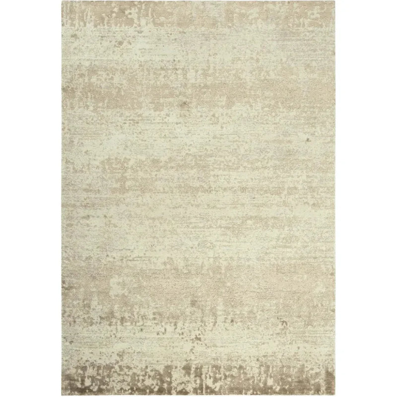 Bring modern style to your home or office with the Radiant Beige, Ivory, and Tan Abstract Distressed Rug. Woven of 80-percent soft New Zealand wool, it is accented with 20-percent Tencel, nylon, and wool-blend fibers for a shimmering, subtle contrast. Differing pile heights add further modern dimension, making each rug a piece of distressed under-foot artwork. Even people with extensive rug knowledge will easily confuse this innovative power loomed rug for an authentic hand knotted piece. Side woven to create flexibility and softness using fine, pure New Zealand wool and accented with a shimmering Tencel/Nylon/Wool blend for contrasting highlights. This collection is a hybrid blend of machine made and hand made. After the weaving is completed each piece is sent to our hand -made facility where it is hand washed, hand carved and hand surged exactly as authentic hand- made carpets have been finished for centuries.