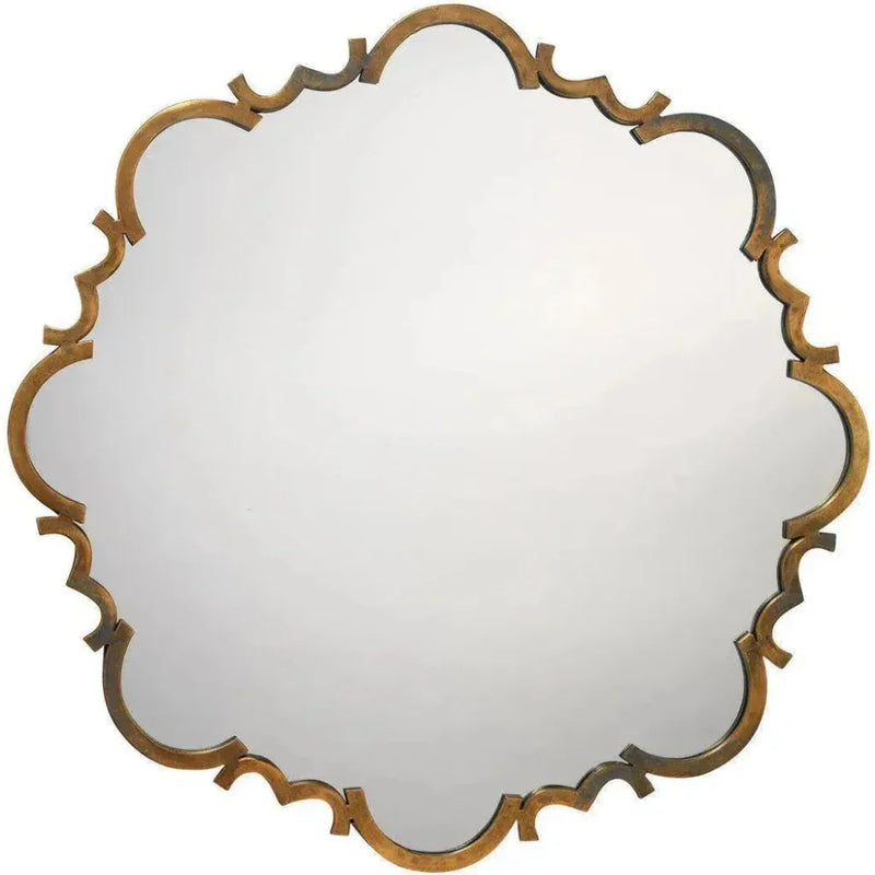 Introducing the Albans Gold Round Mirror - Brass Wall Mirror, a refined and sophisticated addition to your space. Its hand-worked burnished antique brass finish and scalloped edge frame add a touch of elegance, elevating any room to a luxurious haven. Welcome home luxury with this modern traditional piece. A new Modern Traditional piece with a scalloped edge frame in a hand worked burnished antique brass finish. Welcome home the refined sophistication of our Albans Gold Round Mirror - Brass Wall Mirror. Its scalloped edge frame, finished with hand-worked burnished antique brass, adds an elegant touch to any room. Transform your space into a luxurious haven with this modern traditional piece.