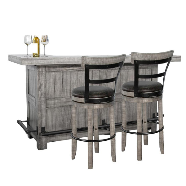 Mahogany gives this home bar a timeless appeal, perfect for entertaining guests. With its Alpine Grey finish, it fits into any modern setting, making a statement in your living space. This bar comes with two stools, so you’re ready for gatherings right away. The added pull-out cutting board tray is handy for quick prep work, and there are felt-lined storage drawers to keep items safe and organized. A stemware rack is included for your glasses, and a metal foot rail adds a touch of comfort and style. Whether you’re hosting a party or just enjoying a quiet evening, this bar makes it easy.
