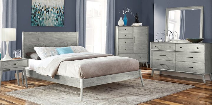 The American Modern 6-Drawer Dresser offers a stylish and practical solution for your bedroom. Crafted with sleek lines, this dresser is a nod to mid-century modern design. It features mindi wood with a modern gray finish that adds a touch of elegance to any room. The dresser is sturdy and functional, with six spacious drawers providing ample storage for clothes or linens. The top drawers are felt-lined, making them perfect for delicate items. Its construction includes English dovetail joints and full-extension guides, ensuring durability and ease of use. This dresser’s thoughtful design makes it a versatile addition to your home, blending seamlessly with a range of interiors.
