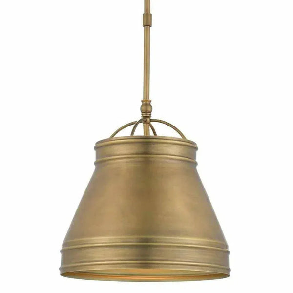 The Lumley Brass Pendant has an urban edge to its design with its hand-finished frame in an antique brass. The petite shade extends from a stem with an adjustable hanging length to make this brass pendant terrific for grouping at different heights. Adjustable from 23.5" to 55.5" with use of included chain/rod kit/cable. If your space calls for a longer drop, additional chain/rods/cable is available for purchase.