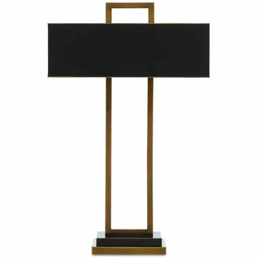 The Otto Table Lamp is an artistic study of rectangles, showcasing a sophisticated blend of antique brass and oil-rubbed bronze finishes. The lamp's tailored profile and carefully considered placement of the metal shade beautifully complement the intersecting metal ribs. A perfect harmony between detailed craftsmanship and luxurious finishes, this lamp is a must-have for those with refined tastes and an eye for contemporary design.