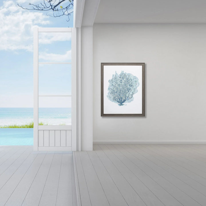 This Aqua Coral Wall Art brings a refreshing splash of color to any coastal-themed space. Its vibrant aqua blue coral illustration stands out against a crisp white background, making it a striking addition to any room. The artwork is elegantly framed in a rustic wood-grain finish, adding a touch of natural charm that complements the vivid coral design. This art piece is perfect for those looking to enhance their home décor with a coastal vibe.