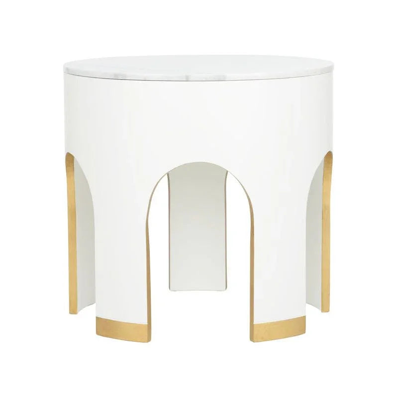 Aqueduct End Table with Marble Top and Gold Accents Features: