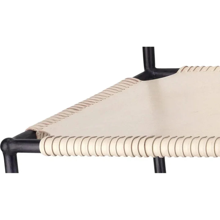 The Asher Full Grain Leather Bar Stools with Back combine rustic charm with modern refinement, making them a standout addition to any bar or counter space. Available in Cashew Tan or White, each stool features a luxurious sling-style seat and back crafted from supple full-grain leather and supported by a sturdy steel frame. Reinforced with chunky stitch detailing, the design ensures both durability and lasting style. A sleek metal footrest adds comfort, while the rustic, minimally finished metal frame enhances the transitional, modern, and industrial appeal. Each handcrafted piece showcases unique variations in leather color and texture, ensuring no two stools are exactly alike. Perfect for home bars, kitchen counters, or cozy corners, the Asher stool combines sophistication, comfort, and long-lasting quality.