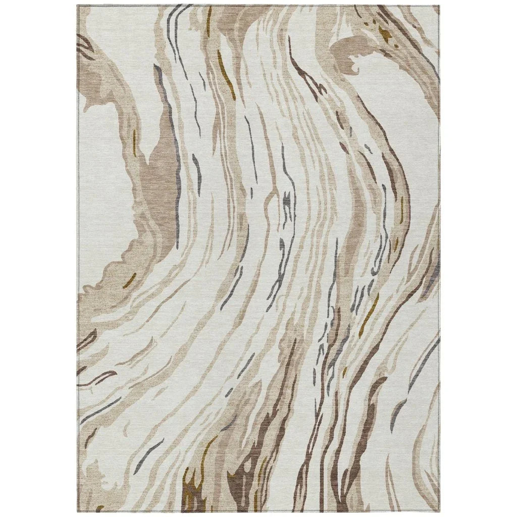 Transform any room or outdoor space with this stunning area rug. The Aureva Ivory Washable Indoor-Outdoor Rug features beautiful vertical swirls, adding a touch of elegance and movement to your decor. This rug is crafted with both style and practicality in mind. It's UV stabilized, ensuring it can handle the elements whether you choose to place it indoors or outdoors. Its ultra-thin design fits comfortably under doors and furniture, making it perfect for high-traffic areas.