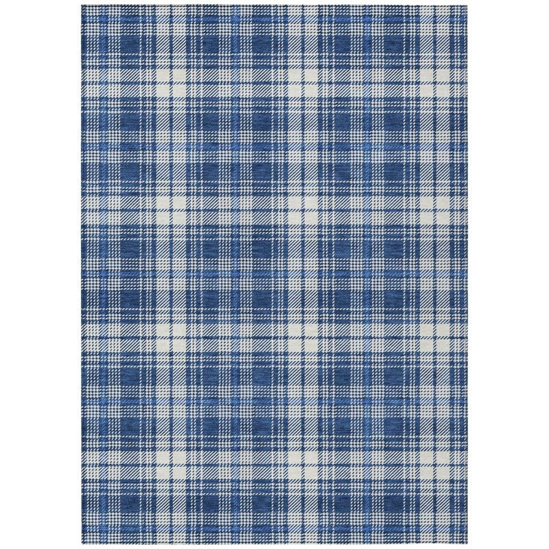 Transform any space with a touch of elegance and practicality using this beautifully designed rug. Its plaid pattern, featuring crisp vertical and horizontal lines, effortlessly complements any room, adding a dash of style that is both timeless and modern. Made from durable polyester, this rug is built to withstand the hustle and bustle of busy homes. Its UV stabilization ensures that the vibrant blue tones stay fresh and bright, even in sunny spots, making it perfect for both indoor and outdoor settings.