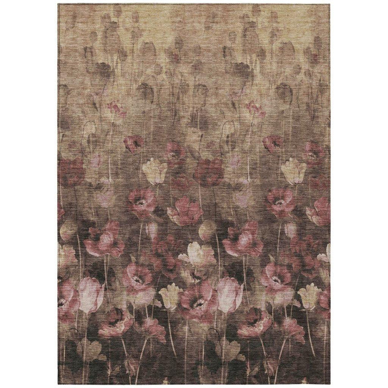 Aurora Taupe Washable Rug UV-Stabilized Floral Design Features: