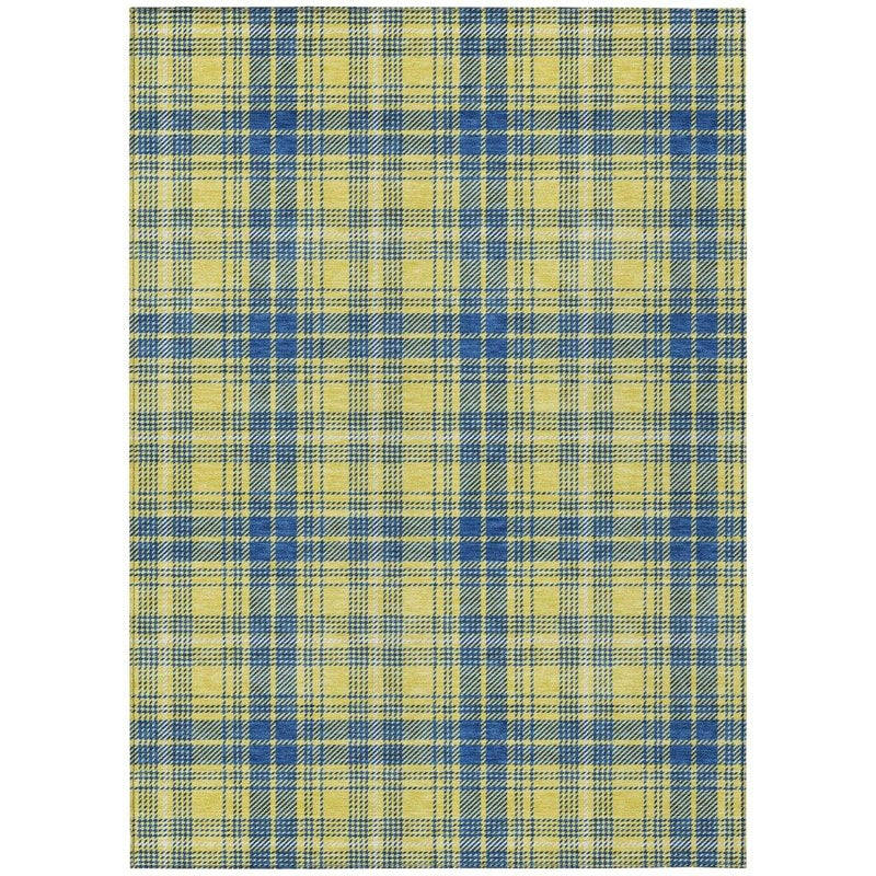 Experience the blend of design and practicality with the Aurora Yellow Washable Indoor-Outdoor Rug. This stylish rug features a chic plaid pattern with crisp vertical and horizontal lines, making it a versatile choice for any room. Its vibrant yellow color adds a touch of brightness to your space, enhancing its aesthetic appeal. Designed for both indoor and outdoor use, the rug is UV stabilized to protect against fading, ensuring it maintains its charm even in sunny areas. The ultra-thin build allows for easy placement and fast drying, making it perfect for households with pets and children.
