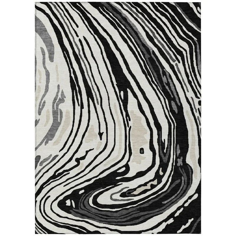 Avelia Black Washable Rug With Swirl Pattern Features: