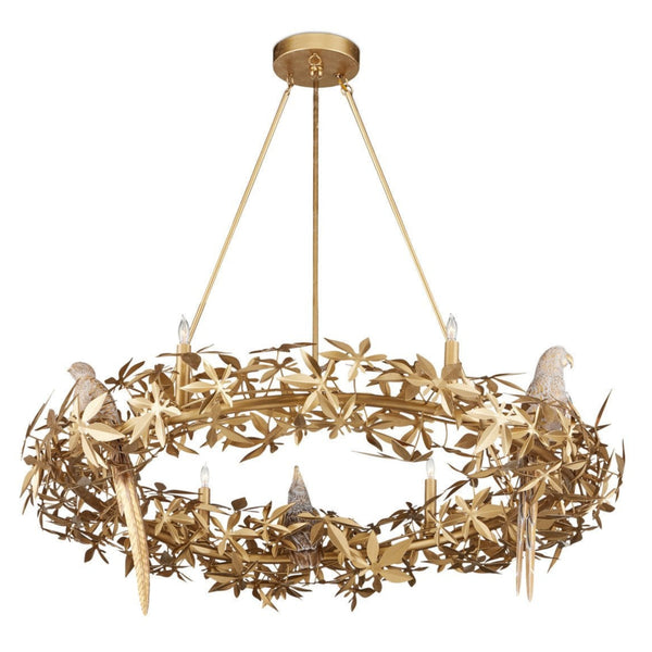 Aviary Gold Ring Chandelier With Leaf And Bird Accents Features: