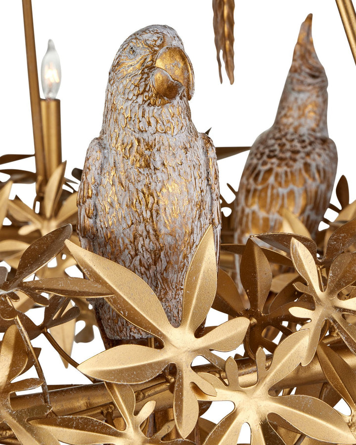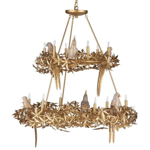 Aviary Gold Chandelier With Birds And Leaf Motifs Features: