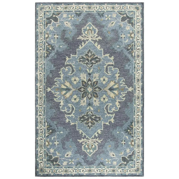 The Cascade Rug boasts an alluring Persian-style floral medallion design with soft neutral hues of ivory, powder blue, and grey. The center of attention is a large central flower surrounded by interlocking, swirling flowers at the edges. Meticulously hand-tufted from 100-percent wool and finished with a bound edge, this rug is made to last and add lasting beauty to your home or office decor. The Cascade collection brings texture and dimension to a whole new level. Hand-tufted using premium wool, these abstract and geometric designs make a dramatic statement to any setting. By combining different dying techniques of on trend colors, different yarn thicknesses, high and low, cut piles, and loop pile where it’s called for, the designers of this collection have created high fashion looks at a very affordable price!
