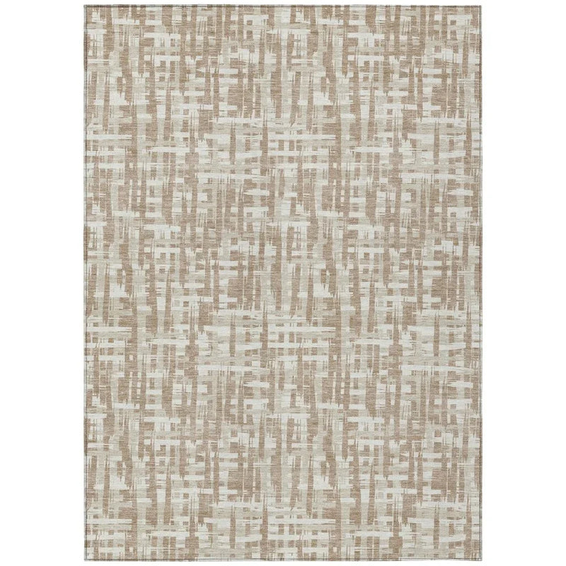 Add elegance and style to your home with this beautifully designed area rug. The intricate pattern of crisscrossing lines gives it a unique look that fits well with any decor. This rug's smooth lines add a lively touch to any space, making it an ideal choice for both indoor and outdoor settings. Its tan color brings warmth and sophistication, enhancing the aesthetic of your living area. Crafted from durable polyester, it is designed to endure wear and tear, making it suitable for high-traffic areas or homes with pets.