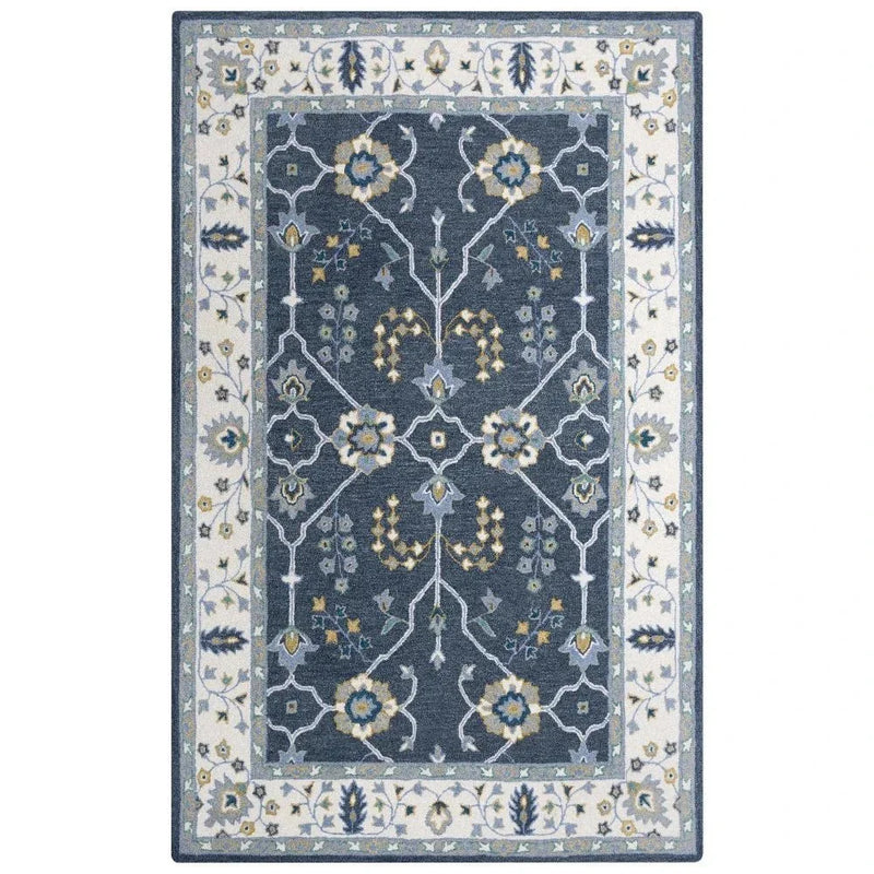 This hand-tufted area rug from 's Conley Collection features a traditional Persian style and border design in a strikingly elegant navy blue and ivory color palette. 100% premium wool construction gives this rug a luxurious texture coupled with effortless durability. Timeless sophistication and elegance define this rug’s striking contrast and unique aesthetic that will easily complement any room with a unique style statement that’s all your own. The Conley collection brings texture and dimension to a whole new level. Hand-tufted using premium wool, these traditional and uniquely colored designs make a dramatic statement to any setting. By combining different dying techniques of on trend colors, different yarn thicknesses, high and low, cut piles, and loop pile where it’s called for, the designers of this collection have created high fashion looks at a very affordable price!