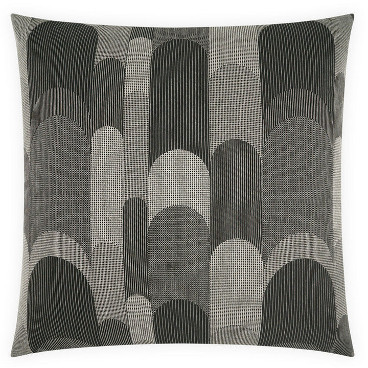 The Balutto Pillow in Ebony blends modern style with a striking geometric design. This square pillow features a unique pattern with arch shapes and a striped texture in black and gray tones, adding a bold touch to any room. Its removable cover and insert make cleaning easy, while the hidden zipper ensures a sleek look. Handcrafted in California, each pillow is cut and sewn to order, ensuring quality and care. Made from a blend of cotton, polyester, and other materials, it offers both comfort and durability. The pillow’s feather and down insert provides a plush feel, making it perfect for lounging.