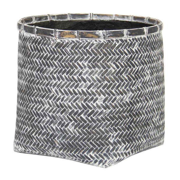 Bamboo and concrete come together to create this stylish indoor basket pot with a grey wash finish. It's designed to blend seamlessly into any room, adding a touch of natural elegance. Perfect for those who love plants but want to keep things easy, this pot has a drainage hole with a plug, making it simple to manage water levels and keep your plants happy. It's just the right size for small to medium indoor plants, and its neutral grey color fits with any decor. With its sturdy build, you can count on it to hold up nicely over time.
