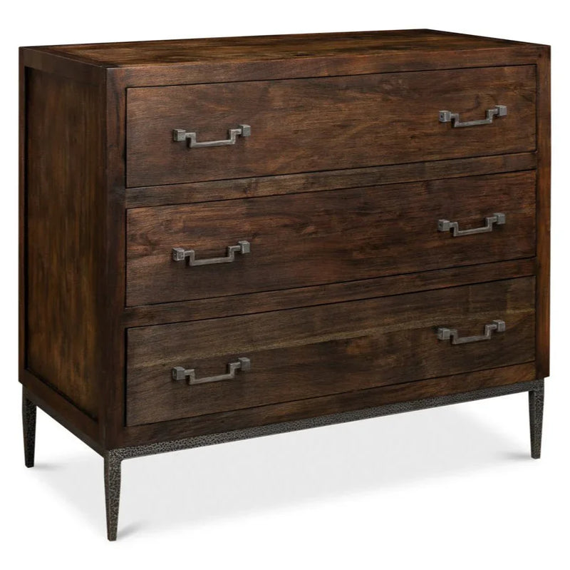 Crafted from high-quality mango wood, this dresser is built to last. The rectangular shape and tapered metal legs provide a modern yet rustic design, making it a perfect fit for eclectic spaces. With its generous storage capacity, it offers ample room for organizing clothes, linens, or other essentials. Its robust build and stylish appearance make it an ideal choice for those looking to enhance their home with a blend of modern and classic elements.
