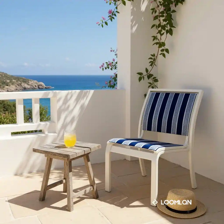 What's the most durable outdoor sling furniture? The Bazza Sling Aluminum Frame Stacking Armless Café Chair combines powder-coated aluminum framing with premium sling fabric for a lightweight yet sturdy design that resists rust in coastal environments and dries quickly after rain.