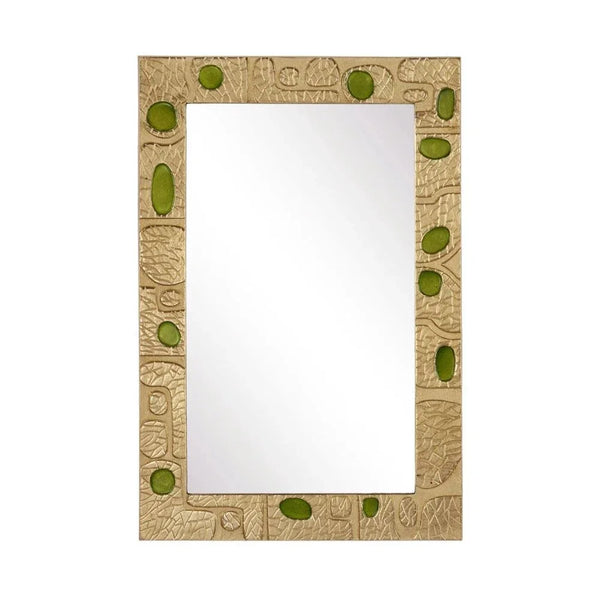 Crafted from high-quality materials like cast aluminum and enamel, this mirror promises durability and longevity. Its glam style is ideal for interiors seeking a touch of luxury. Whether you're refreshing your decor or starting anew, the Beau Monde Gold & Green Mirror brings a timeless elegance that complements various color palettes and styles. Its distinctive design is sure to captivate and delight, making it a must-have accessory for your home.