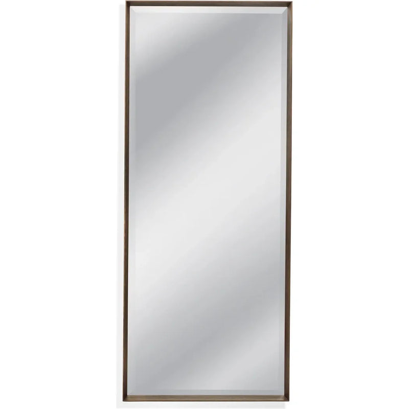 The Belden floor Mirror frame, with its grey and white wash finish, features a beveled mirror and is made from high-quality materials such as wood and mirror glass. Anti-tipping hardware is included for easy wall mounting. Made in the USA, this floor mirror is the perfect addition for those who enjoy taking risks in their interior design choices.