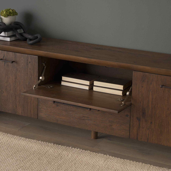 Belford Dark Brown Oak Media Console With Ample Storage Features: