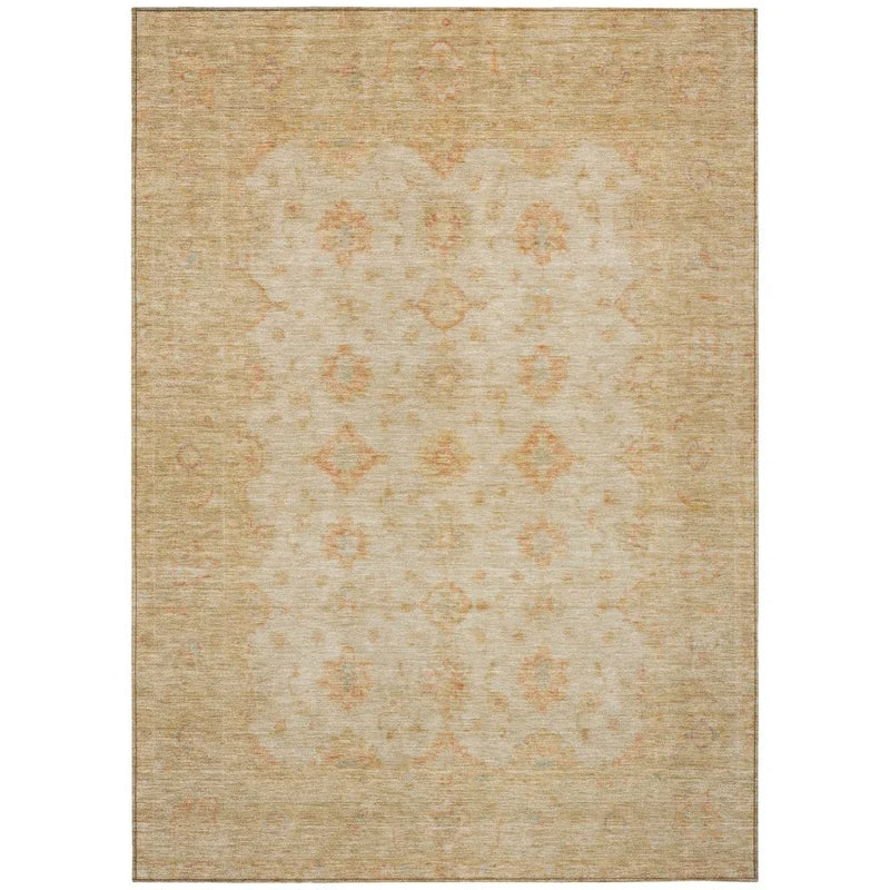 Constructed from durable polyester, this rug is a practical choice for family and pet-friendly homes. The material is stain-resistant, offering peace of mind in high-traffic areas. Additionally, the non-skid backing ensures it stays securely in place, while the machine-washable feature offers hassle-free maintenance. Whether you're placing it in your living room, patio, or any other area, this rug provides a blend of traditional beauty and modern practicality.