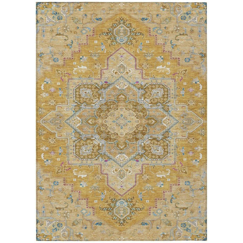 The Bellaya Gold Washable Rug brings the timeless elegance of a traditional sarouk design with a striking center medallion to your home. Its oriental pattern adds a touch of heritage, enhancing any decor style, whether contemporary or classic. The warm gold color complements a variety of interiors, making it a versatile choice for any room. Crafted from durable polyester, this rug is designed to withstand the demands of a busy household while maintaining its charm.