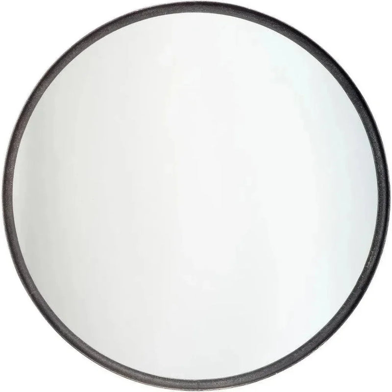 The Refined Black Iron Round Wall Mirror adds a modern touch to any room. With clean lines, a hand-distressed black metal frame, and rounded corners, this versatile mirror brings both simplicity and contemporary style. It can be hung horizontally or vertically above a vanity, sideboard, or dresser, reflecting light and creating the illusion of a larger space. Crafted from hand-distressed black metal, this contemporary wall mirror features gently rounded corners that soften its design without taking away from its eye-catching appeal. Its round shape adds a touch of softness and versatility to any space, and the option to hang it both horizontally and vertically only adds to its charm. As a product expert, I can confidently say that this mirror not only serves its function but also adds a touch of elegance and amplifies the visual appeal of any room.